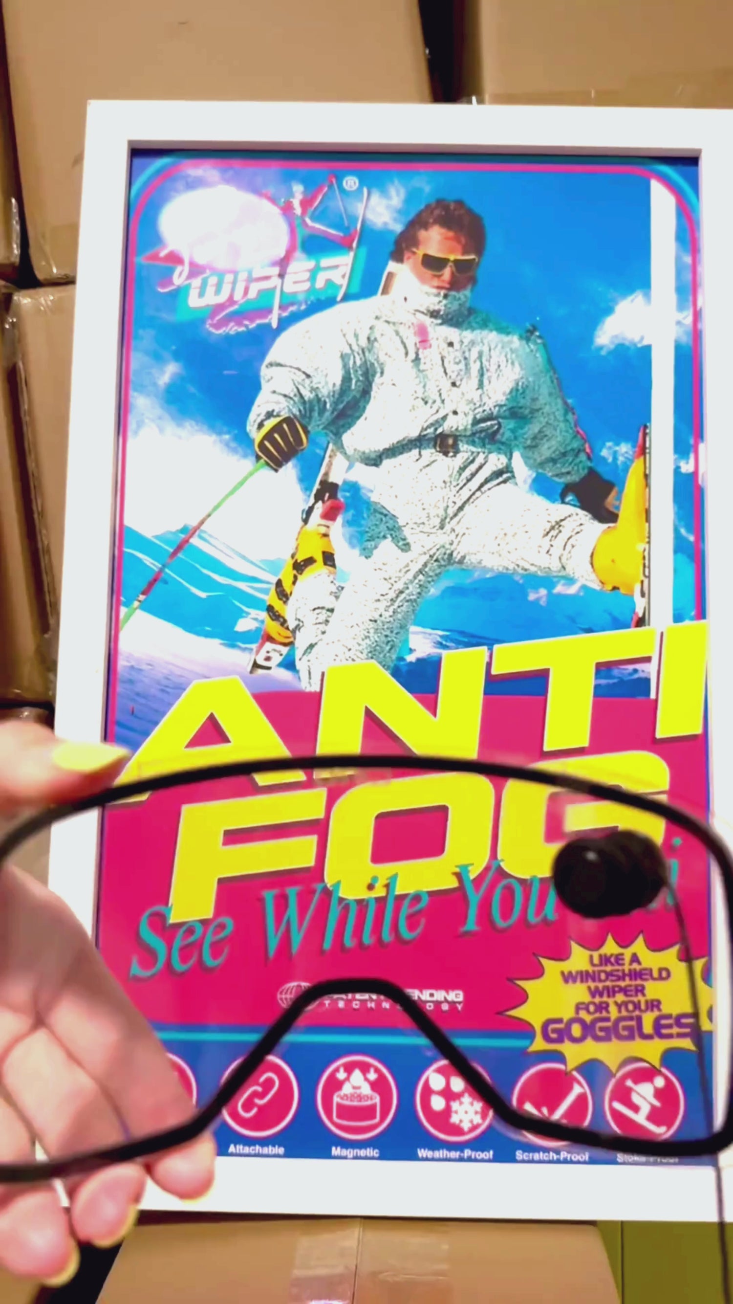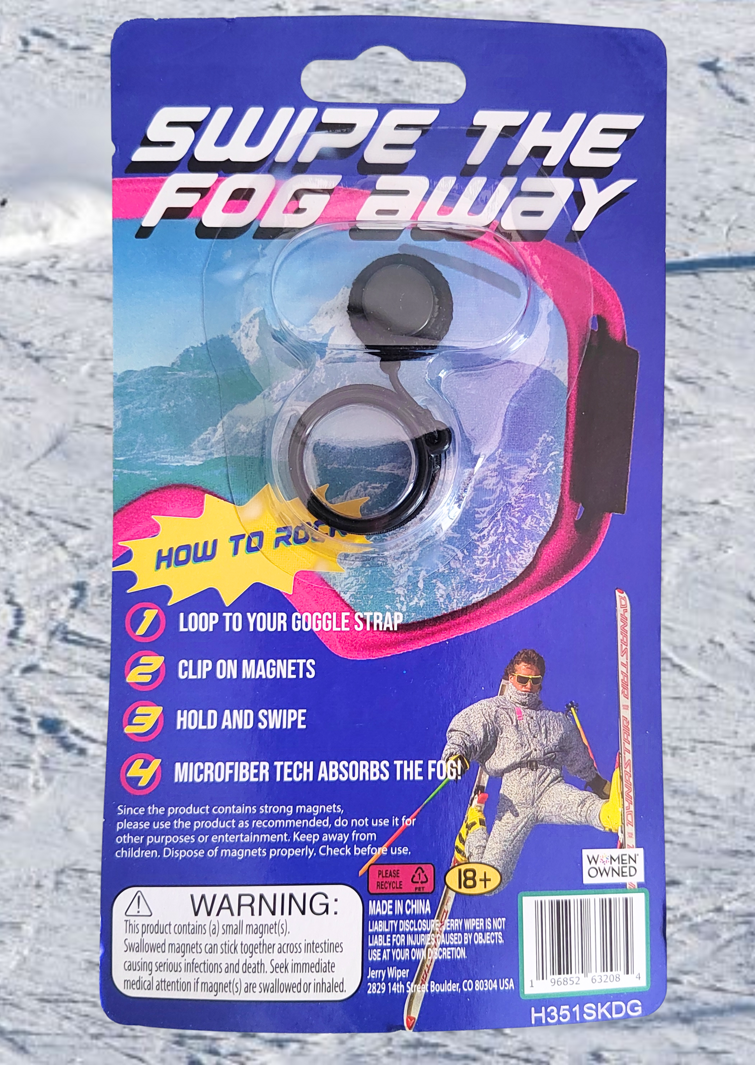 See while you Ski with the Jerry Wiper Ski Goggle De-Fogger. This fog shredder works like a mini windshield wiper for all snow, fog and condensation. So easy your grandma can do it!